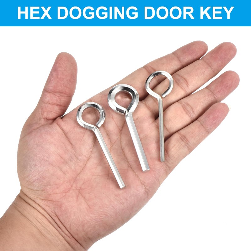 - Material: 45# Carbon Steel with galvanized surface; Hex Dogging Key Size: 7/32 inch; Size: 70 x 23.7 mm/ 2.75 x 0.93 inch (L*W); Packing List: 12 x 7/32" standard hex dogging keys