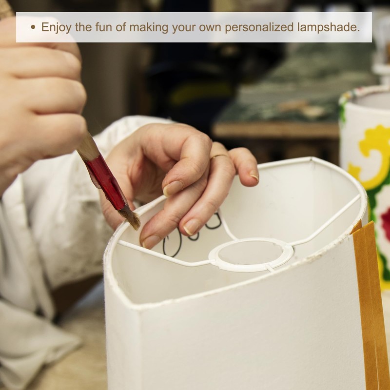 - Instruction: 1. Prepare the lampshade ring, glue, and cut the fabric to the appropriate size. 2. Apply glue to the edge of the lampshade frame. 3. Fix the lampshade frame to the bottom of the edge of either end of the fabric and rotate and roll.4. After forming the cover, glue the two sides of the fabric. 5. Use glue to glue the other side of the lampshade ring, then fold the fabric and completely cover the frames at both ends 6. Cut off the excess fabric and wait for the glue to dry