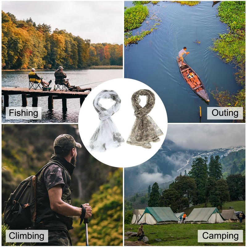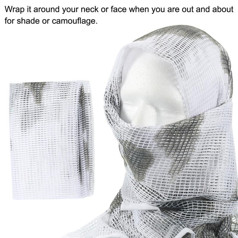- Color: Snow Camo, Digital; Material: Polyester, Nylon; Overall Size: 180 x 90 cm / 70.9 x 35.4 inch (L*W); Packing List: 2 x Mesh Camo Scarf (1Pcs Each Color)
