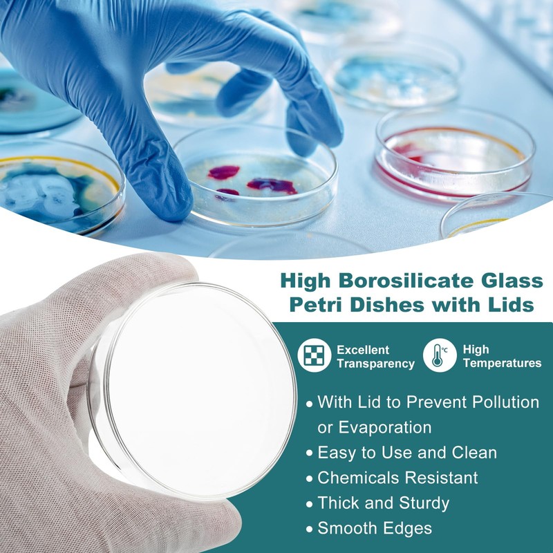 - Application: Perfect for science projects, chemical research, and laboratory applications, they provide a controlled environment for cultivating microorganisms, conducting experiments, and carrying out various laboratory procedures. The transparent nature of the dishes facilitates visual inspection and analysis, making them valuable in microbiology, cell culture.