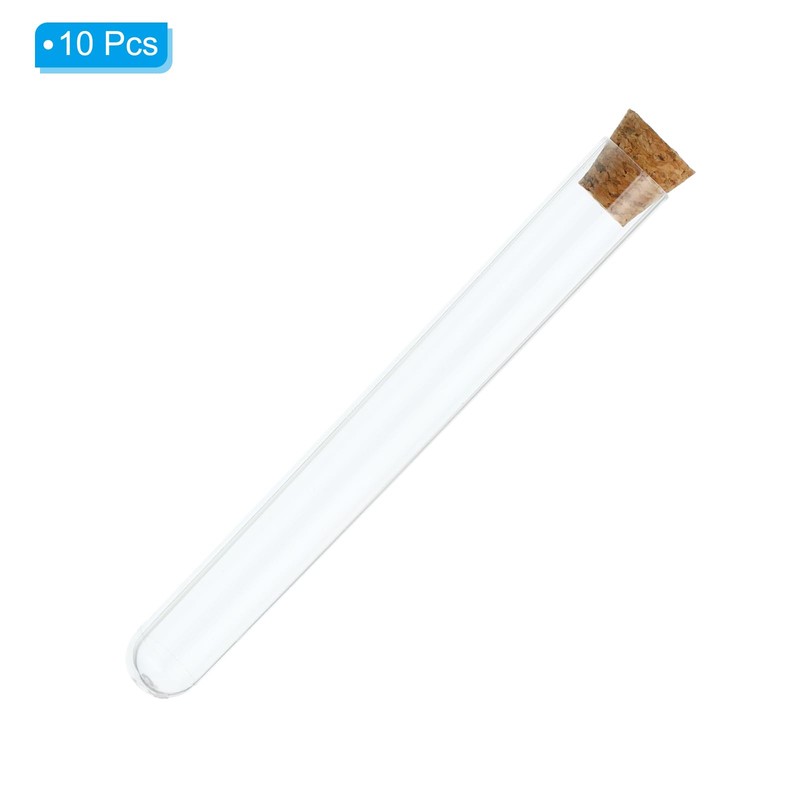 - Advantage: 1. The test tube is made of PS plastic bottle, is sturdy and not easy to break, and durable for use. 2. The wood stopper fits the bottle mouth, make it keep sealing to keep stored items dry and liquid will not leak. 3. The plastic test tube is designed with a transparent appearance, convenient for observing the change of plants or liquid.