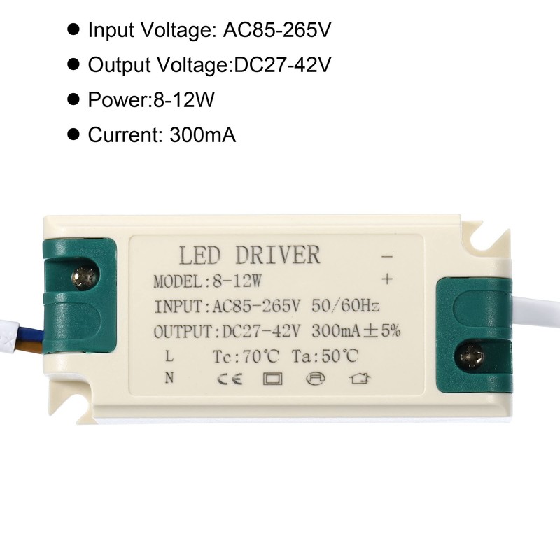 - Specification: Power: 8-12W; Input Voltage: AC85-265V; Output Voltage: DC27-42V; Current: 300mA; Size: 75*32*20mm/2.95*1.26*0.78inch (L x W x T)