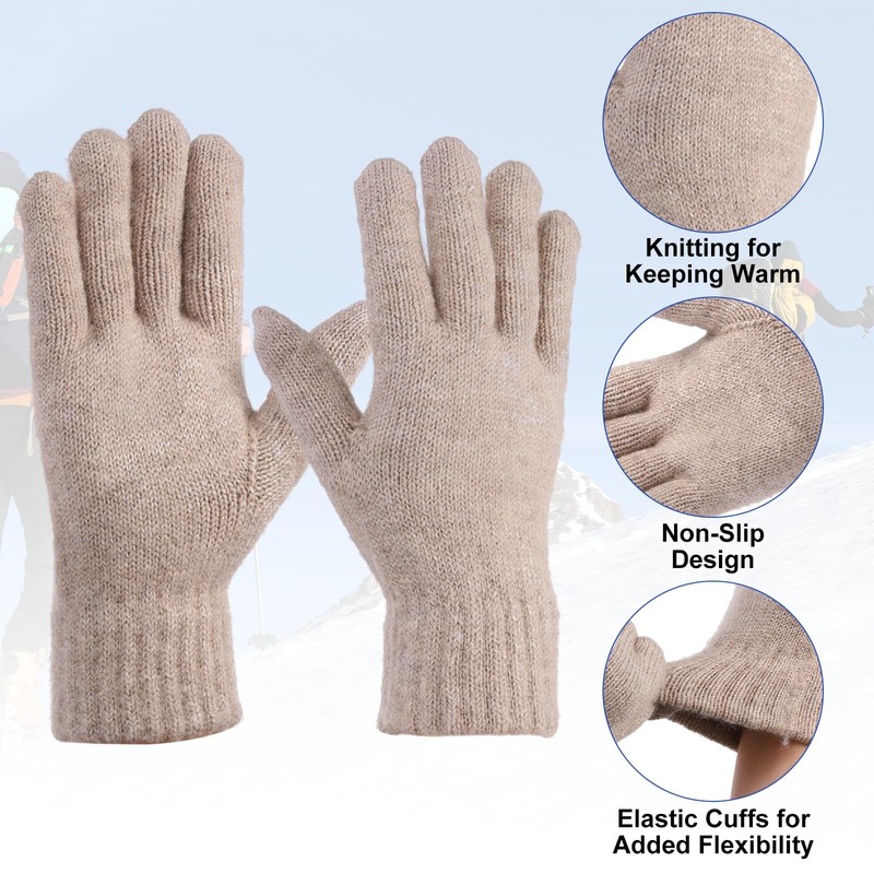 - Three-Finger Touchscreen Design: Touchscreen knitted gloves are made of highly sensitive conductive material, allowing you to work on touchscreen devices such as smartphones, tablets, etc. in the cold winter without worrying about damage on your hands.