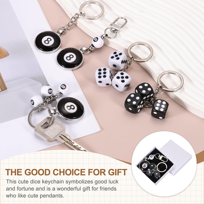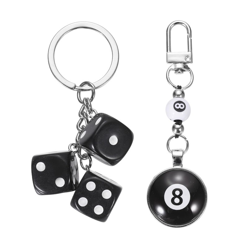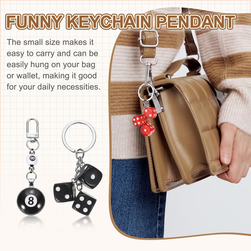 - Application: The 8-ball dice keychain set symbol good fortune and luck, suitable for various occasions. It can be used as a keychain, handbag pendant, backpack decoration, wallet decoration, or even a car keychain. Its lightweight and portable design makes it good for your daily necessities, whether you are joining a party, gathering, or event. This pool ball and dice is a beautiful gift for your friends who like dice.