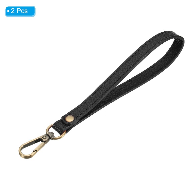 PATIKIL 8 Inch Wristlet Strap, 2 Pack PU Leather Wristlet Keychain Wrist Strap Replacement with Bronze Metal Key Ring Lock for Wallet Purse Key, Black