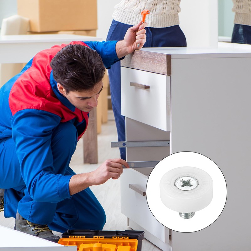 - Benefits: Drawer rollers are made of durable POM material for added strength and abrasion resistance. Stainless steel threaded rod ensures durability and strong support. The drawer roller not only reduces noise during operation, but also features ball bearings to ensure stable operation