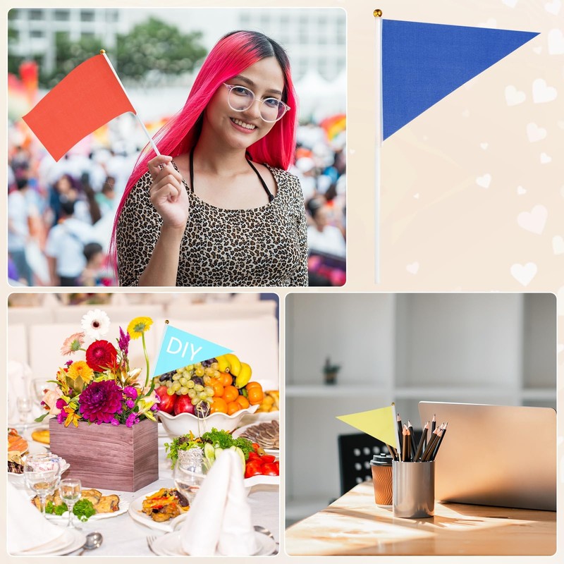 - The flag sticks are made of plastic, and flags are made of durable polyester fabric, great for parties, festival events celebration, you can also put flags in the backyard, sports club, garden, golf course, playground, flower pots, office, family, conference room, etc.