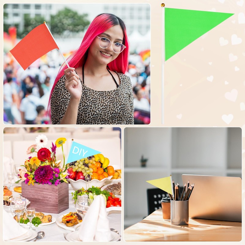 - The flag sticks are made of plastic, and flags are made of durable polyester fabric, great for parties, festival events celebration, you can also put flags in the backyard, sports club, garden, golf course, playground, flower pots, office, family, conference room, etc.