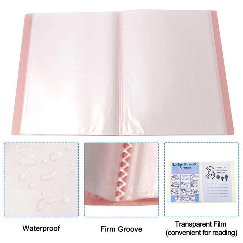 - Advantage: It is made of waterproof and dustproof polypropylene material, with a smooth and clear surface. The inner page pocket is a non-deformable white transparent film, which is convenient for you to read the content on the paper. Designed with rounded corners to prevent your fingers from being scratched when using it. Moreover, there is a label location on the side, you can insert a definition label for easy classification.