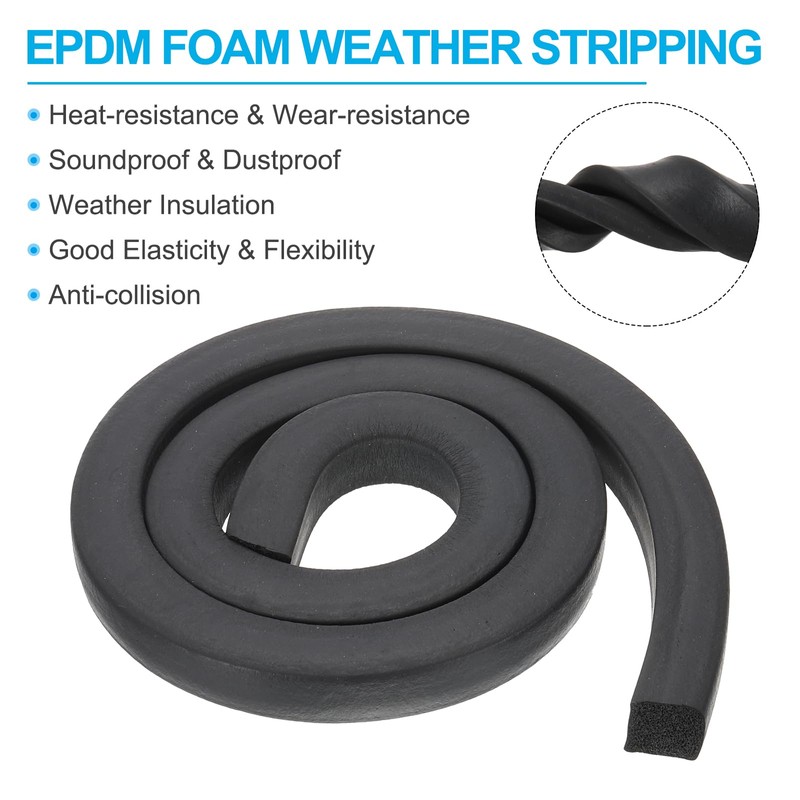 - Specification: Material: EPDM; Color: Black; Roll Length: 3meter/9.8Ft; Size(WxT): 15 x 15mm (5/8inch x 5/8inch); Package List: 1 Roll x Weather Stripping Door Seal