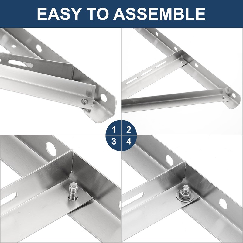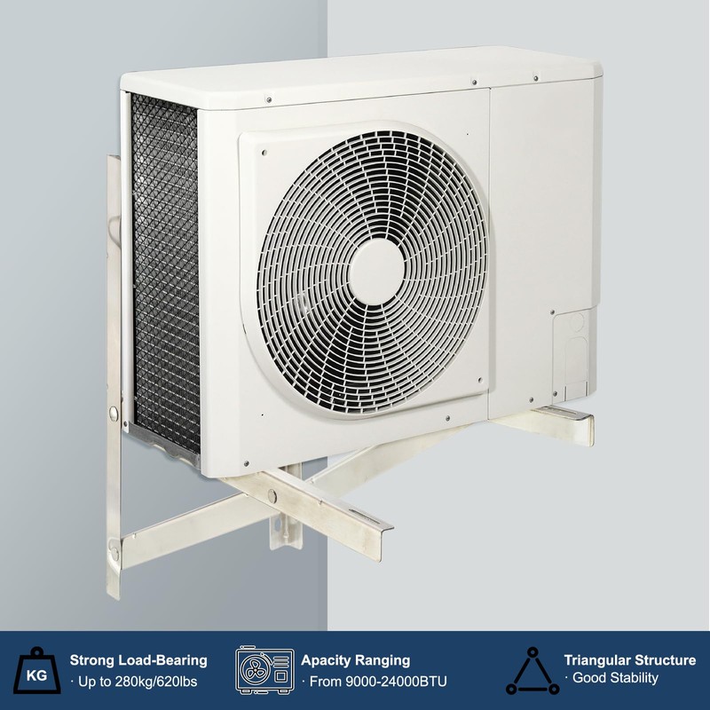 - Advantage: 1. the stainless steel air conditioner bracket and triangular spiral design make it has excellent load-bearing capacity, and anti-corrosion and anti-rust, durable. 2. The air conditioner bracket link is fixed with rivets and comes with a screw mounting kit, which makes the link firm and more durable. 3. Multi-mounting holes design, easy to adjust the height, easily adapt to your actual installation space.