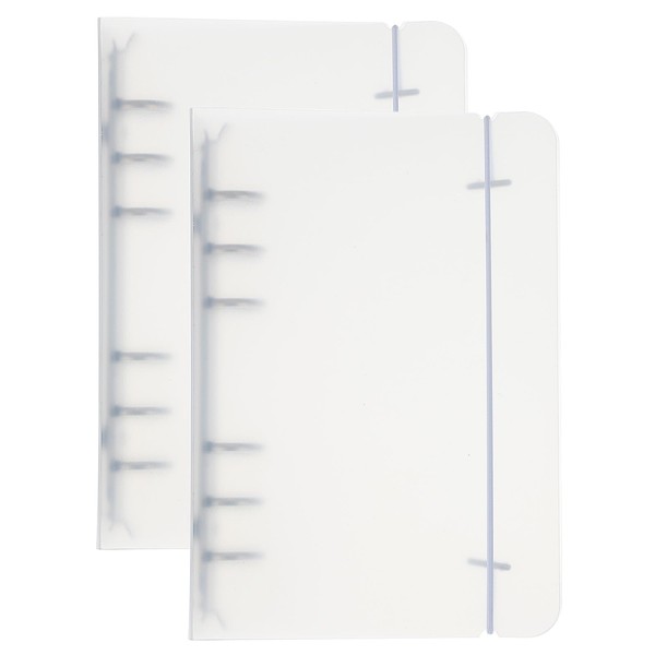 PATIKIL A6 Binder Cover, 2 Pcs PP 6 Ring Round Ring Binder Cover with White Fixing Belt Metal Lock Loose Leaf Binder Protector Refillable Notebook for Meeting Folder, Matte White