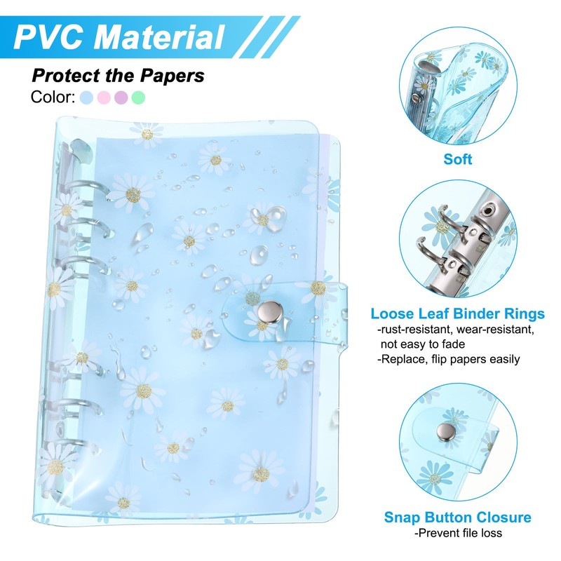 1. The A6 clear binder cover is made of waterproof and dirt-resistant soft PVC that is not easy to deform, can protect your papers from tears and dust. The loose leaf binder rings are made of durable metal that is excellently rust-resistant, wear-resistant, not easy to fade, can be used for a long time.