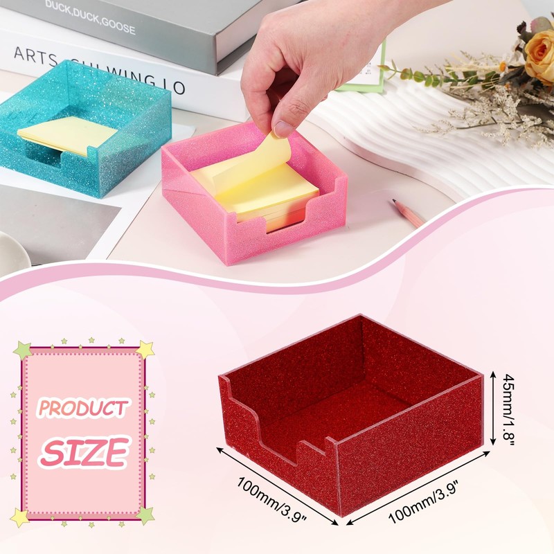 - Color: Red; Material: Acrylic; Size: 100 x 100 x 45mm / 3.9 x 3.9 x 1.8 inch(L*W*H); Package List: 1 x Bling Sticky Note Holder