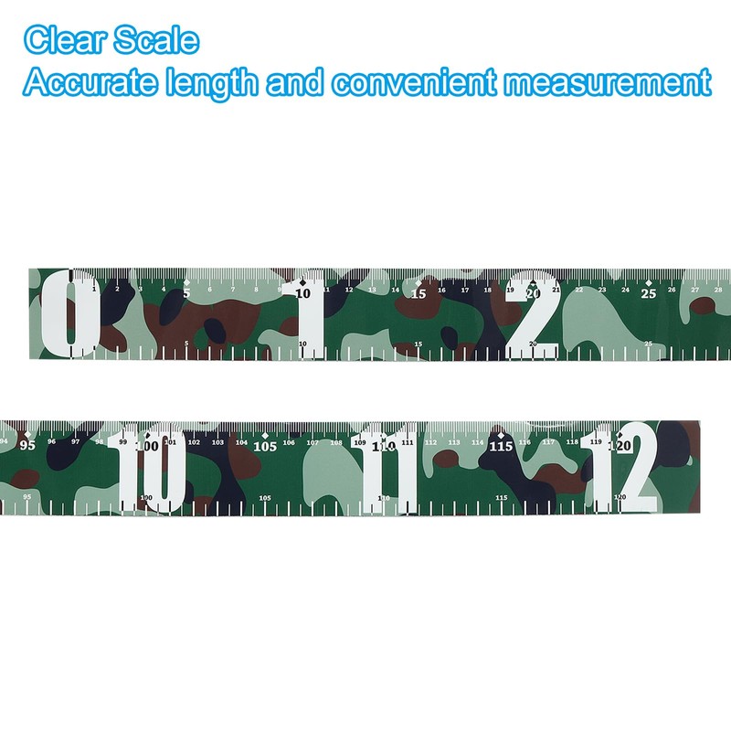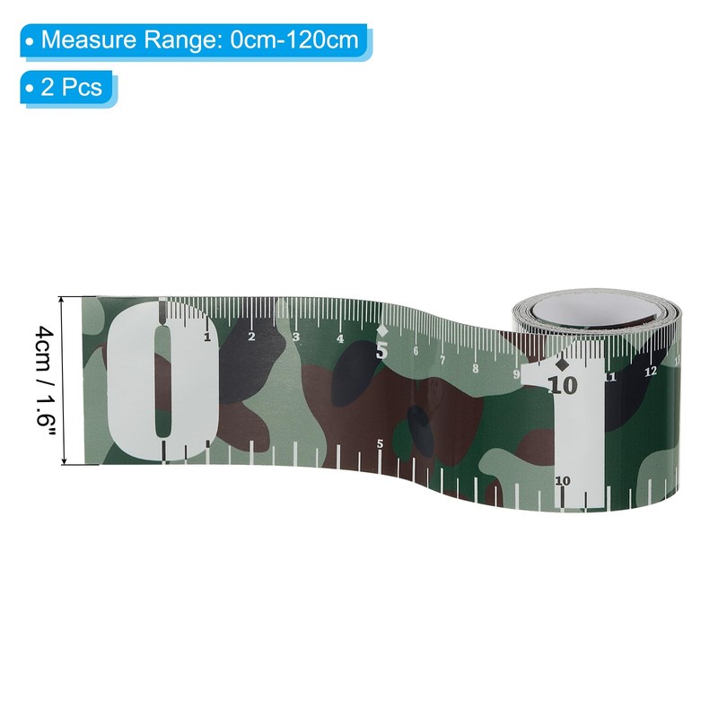 - Measure Range: 0cm-120cm; Width: 4cm / 1.6 inch; Material: PVC; Color: Camo; Package List: 2 x Fish Measuring Tape