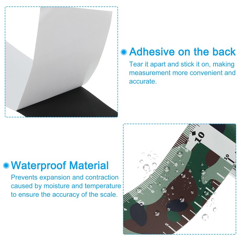 - Instruction: The adhesive backing allows for easy installation on various surfaces, including fishing boats, kayaks, or workbenches. Simply peel off the backing and firmly press the fish ruler onto the desired surface.