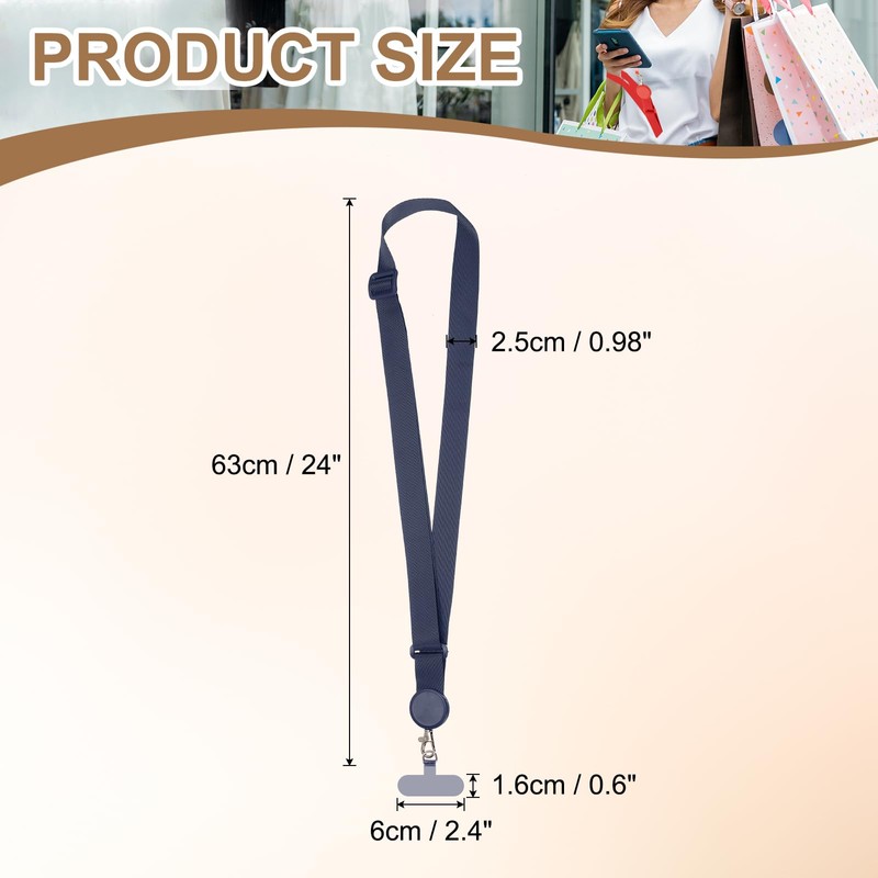 - Specification: Color: Navy Blue; Material: Polyester, TPU; Rope Size: 63 x 2.5cm/ 24.8 x 0.98inch ( L * W ); Patch Size: 6 x 1.6 cm / 2.4 x 0.6inch ( L * W ); Packing List: 1 x Adjustable Phone Lanyard With Patch