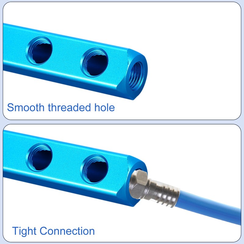 - Multiple Pipe Sealed Connections - Air manifold manifold block can distribute your air compressor from a single source to multiple ports, allowing you to make port connections more conveniently. Port performance is consistent, tight and leak-proof, easy to install and maintain.