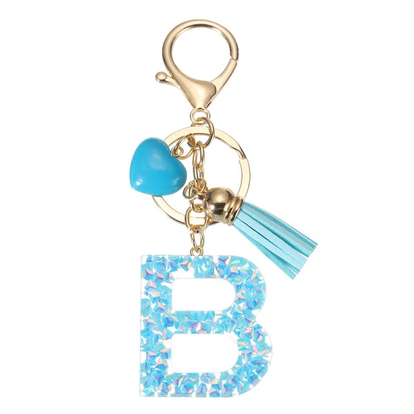 PATIKIL Alphabet Initial Letter Keychain, Resin Cute Keychains with Tassel Heart Letter B Pendant Charm for Women Key Purse Handbag Bag Accessories, Blue