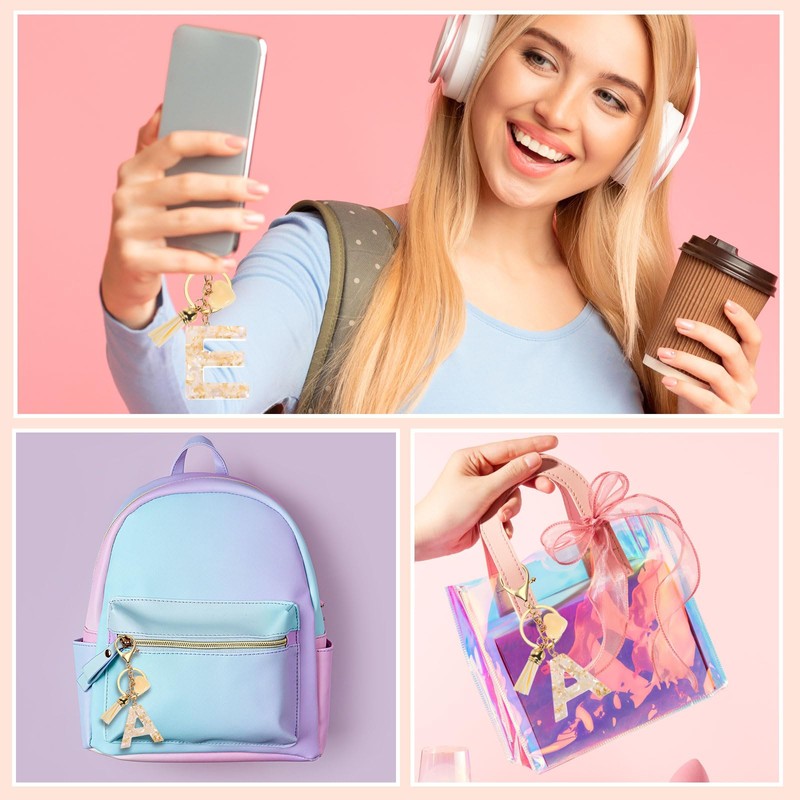 - Application: The exquisite letter charm keychain has a wide range of uses and can be used as a key ring, bag decoration, backpack accessories, gifts, decorations, and even fashion accessories. Suitable for backpacks, wallets, car keychains, mobile phone cases, bag charm, etc.