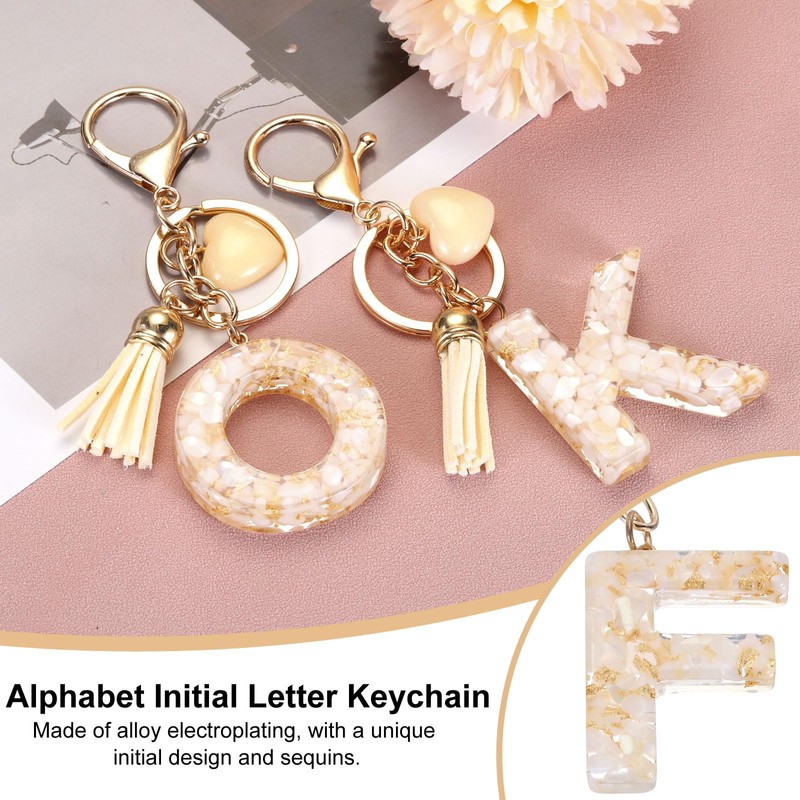 This cute letter keychain comes with tassels and heart-shaped pendants and is made of epoxy resin material, which is hard and does not deform. The keyring is made of alloy electroplating, with a unique initial design and sequins, which are gorgeous and beautiful.