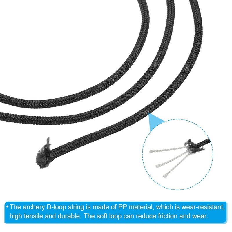 - Features: The archery D-loop string is made of PP material, which is wear-resistant, high tensile and durable. The soft loop can reduce friction and wear.