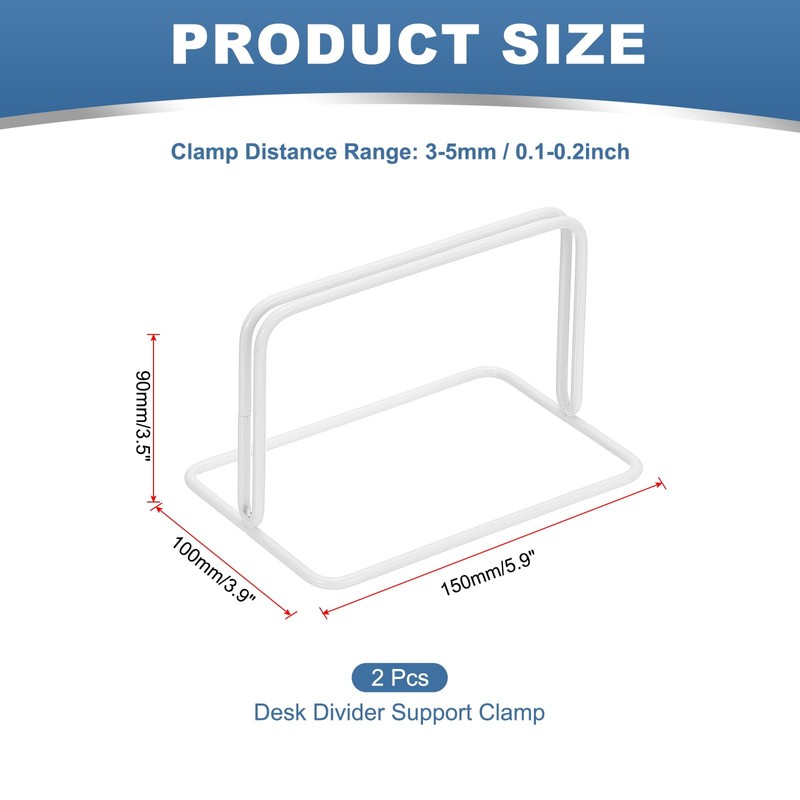 - Specification: Size: 150x100x90mm / 5.9x3.9x3.5inch(L*W*H); Clamp Distance Range: 3-5mm / 0.1-0.2inch; Color: White; Material: Iron plating; Packing List: 2 Pcs Desk Divider Support Clamp.