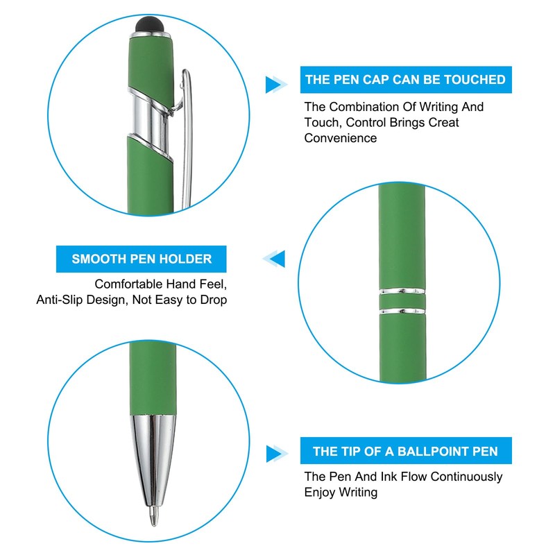 PATIKIL Ballpoint Pen with Stylus Tip, 6Pcs 2 in 1 Metal Pen Black Ink 1.0mm Medium Point Stylus Pen for Touch Screens Style 3, Green