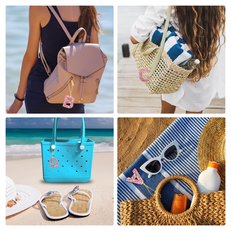 - Note: Each letter comes with a chain for easy installation and is suitable for all standard-size Beach bags, allowing you to quickly and easily add or remove charm as needed.