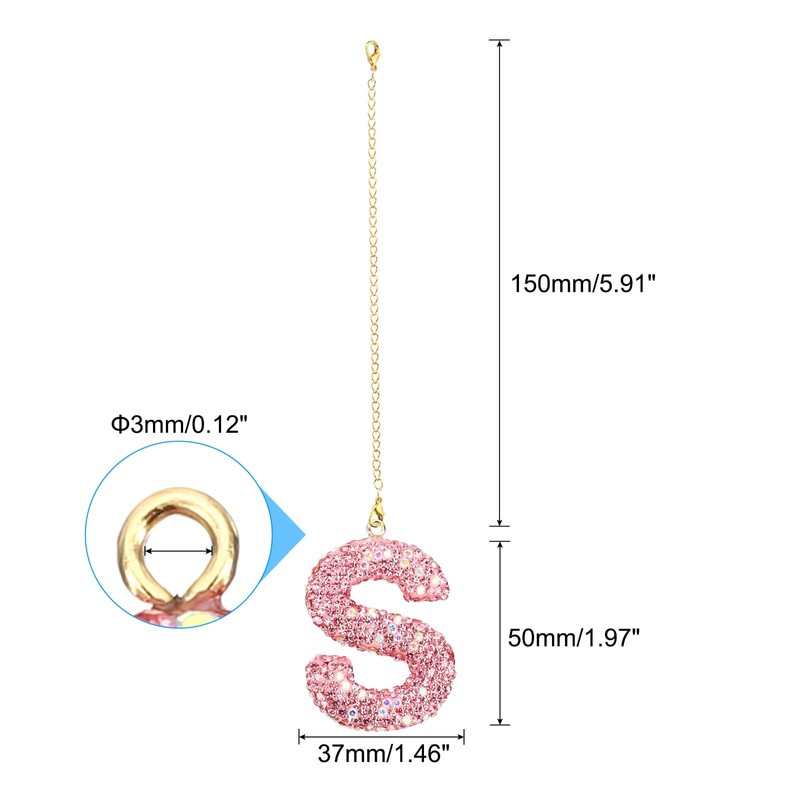 PATIKIL Bling Initial Letter Charm, Letter S Charm with Pink Rhinestones Decorative Alphabet KeyChain Pendants for Beach Bag DIY Craft, Pink