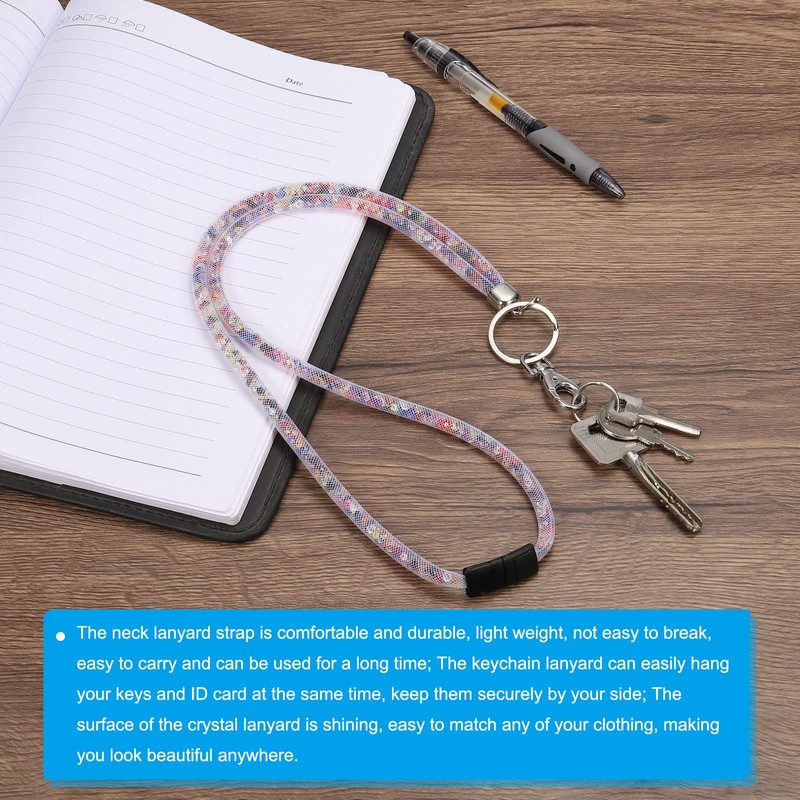 - Advantage: The neck lanyard strap is comfortable and durable, light weight, not easy to break, easy to carry and can be used for a long time; The keychain lanyard can easily hang your keys and ID card at the same time, keep them securely by your side; The surface of the crystal lanyard is shining, easy to match any of your clothing, making you look beautiful anywhere.