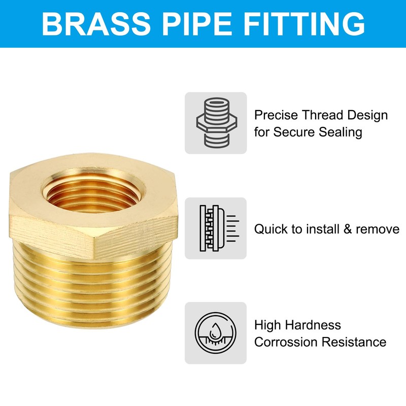 - Specification: Material: Brass; Max Work Pressure: 1200PSI; Work Temperature Range: -65 to 250 F Degree; Thread Size: 1/2" NPT Female x 1" NPT Male; Total Size: 24 x 34mm/ 0.94 x 1.34inch (L x Hex Width); Package List: 2Pcs x Brass Hex Bushing
