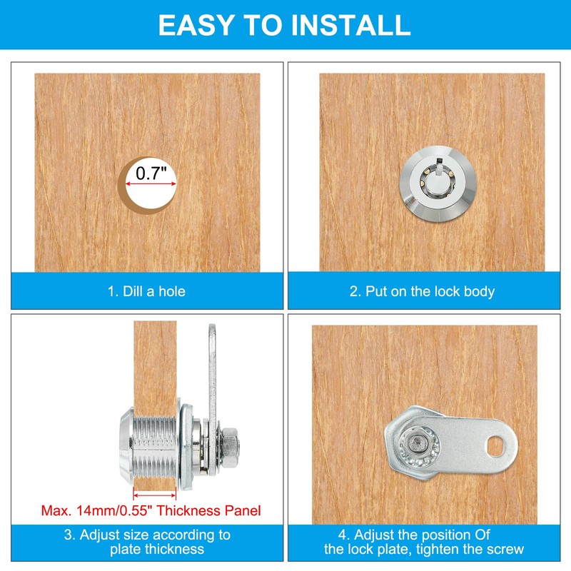 - Durable Material: The cam lock is made of Zinc Alloy and Steel with a plating finish, which is rust-proof, resisting corrosion and wear for long-term use.