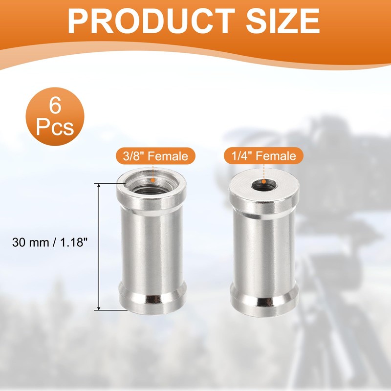 - Color: Black; Threading Size: 1/4" to 3/8" Female to Female; Length: 30 mm / 1.18 inch; Packing List: 6 Pcs x Camera Spigot Convert