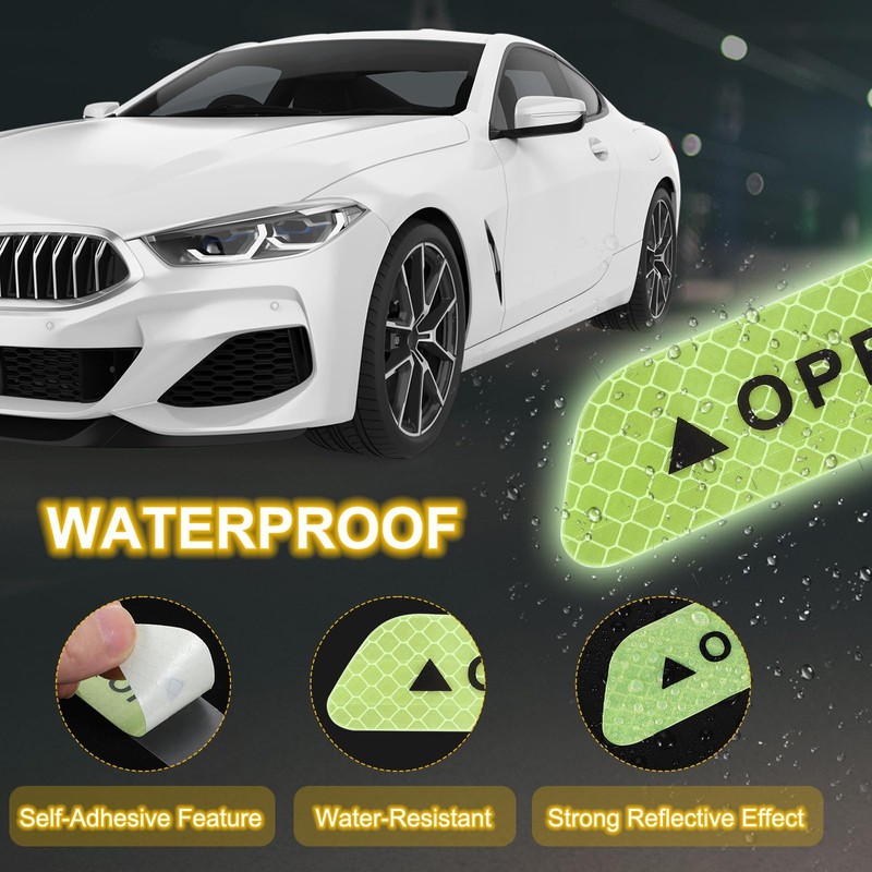PATIKIL Car Door Open Warning Reflective Stickers Night Safety Warning Decals Night Visibility Prompt Decals Car Decal Decor Accessories, 8PCS Fluorescent Yellow