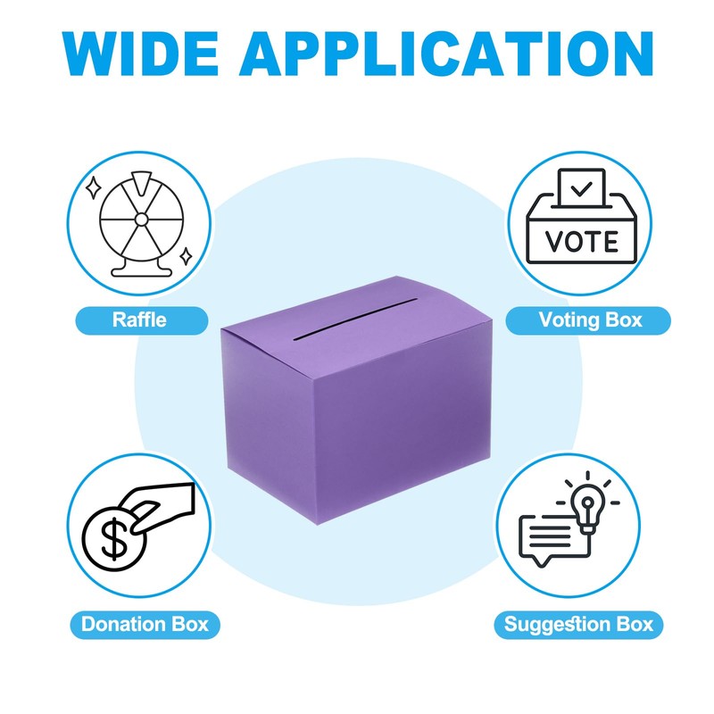 - The raffle box can be used as a voting box, fundraiser box, suggestion box, and more, which has many functions like voting, suggestion collection, tip, and donation. Can be widely used in fundraiser, charity events, trade shows, parties, voting places, competitions, etc.