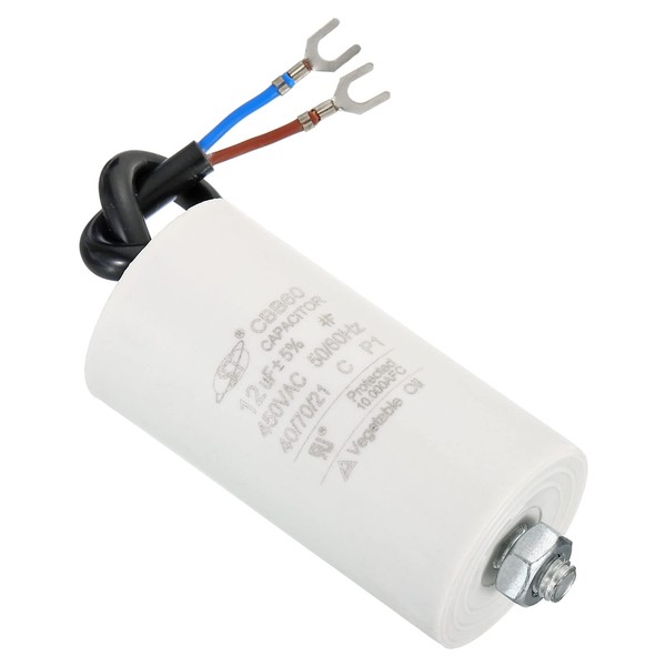 - Model: CBB60;Material: Polypropylene Film Plastic Shell;Lead End: 2 Wires;Tolerance: ±5%;Rated Capacity: 12uF ;Climatic Category: 40/70/21; Body Size: 78x40mm/2.93x1.56inch (L*D); ; Wire Length: 15cm/5.85inch ; Pack of 1Pcs Run Capacitor