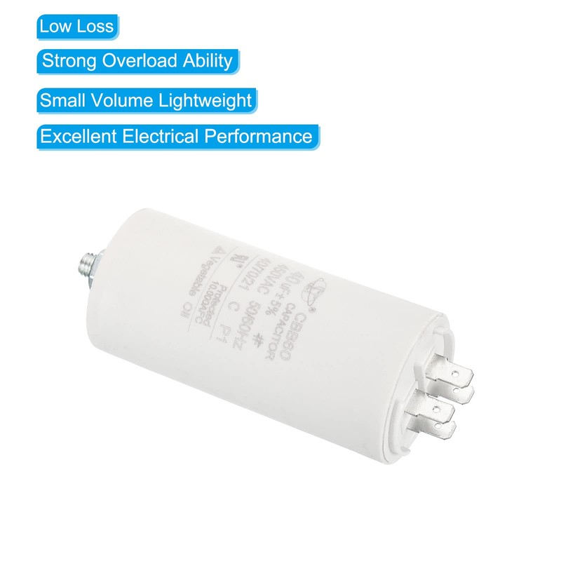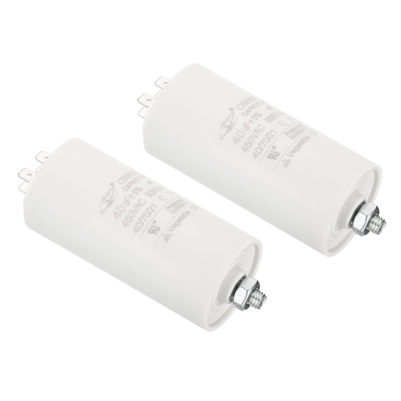 - Model: CBB60;Material: Polypropylene Film Plastic Shell;Lead End: 4 Pins;Tolerance: ±5%;Rated Capacity: 40uF ;Climatic Category: 40/70/21; Body Size: 95x45mm/2.93x1.76inch (L*D); ; Pack of 2Pcs Run Capacitor