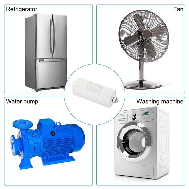 - Suitable for the start-up of single-phase motors with frequency of 50Hz and 60Hz, such as air compressors, water pumps, pressure washers, air conditioners, washing machines, motors, generators, HVAC, fans, drills, splitters, saws, grinders, etc.