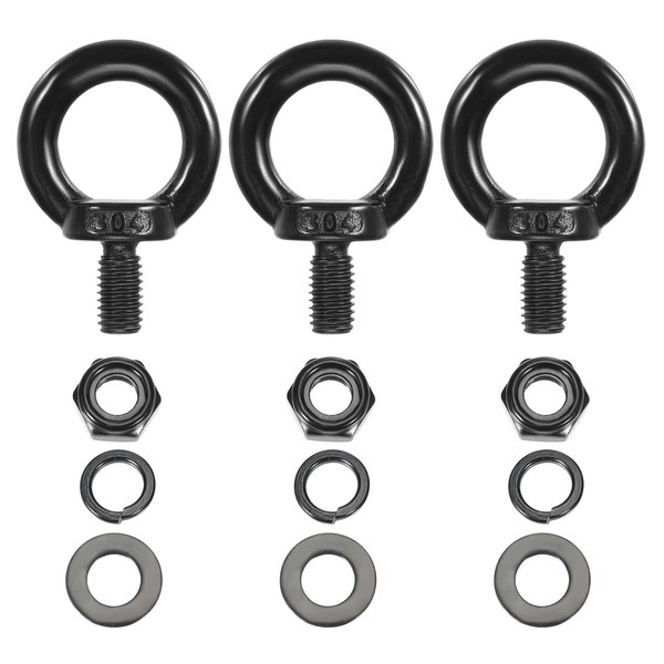 PATIKIL [CCTV01] M8x15mm Lifting Shoulder Eye Bolts 304 Stainless Steel Threaded Eye Bolts with Lifting Ring Hex Lock Nuts, Lock Washers, Flat Washers Set of 3 for Hammock, Black