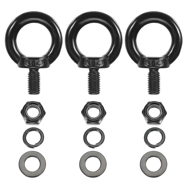 - Color: Black; Material: 304 Stainless Steel; Thread Size: M8x15 mm; Overall Size: 20 x 34 x 7 mm / 0.79" x 1.34" x 0.28"(Inner Diameter x Outer Diameter x Thickness); Package List: 3 x Lifting Ring Thread Eye Bolts (1 x M8 Nut, 1 x M8 Lock Washer)