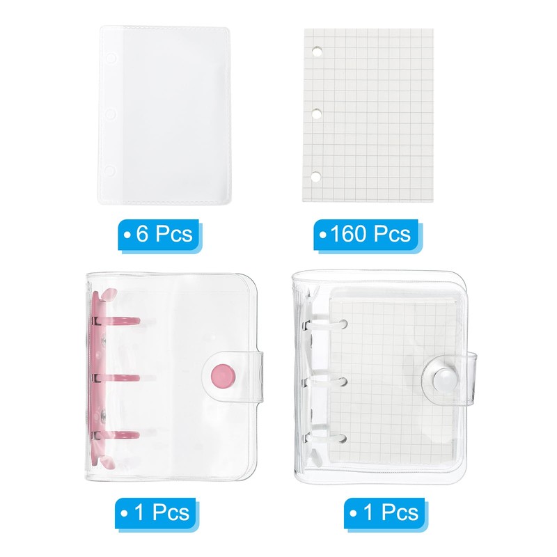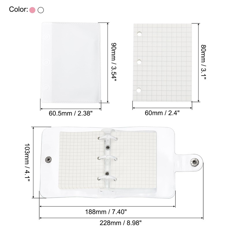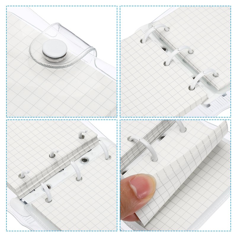- Advantage: The soft PVC transparent exterior offers durability and a minimalist feel, adding a touch of elegance to your workspace. Comes equipped with ample paper for note-taking, organizing, and storing important documents. The 3-ring design provides secure placement for the included sheets of paper. The Snap button design is a protector, that prevents paper from falling.