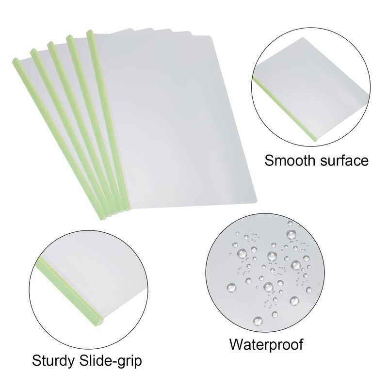 - Advantage: The slide-grip resume covers are made of good plastic and its thickness is 16c, with a flat and smooth surface, good flexibility, not easy to deform, and can be used repeatedly. The slide-grip has large capacity which can hold many papers, and is not easy to fall off. The slide-grip resume covers can clearly display the contents of the report, with high transparency, which is conducive to finding the required documents