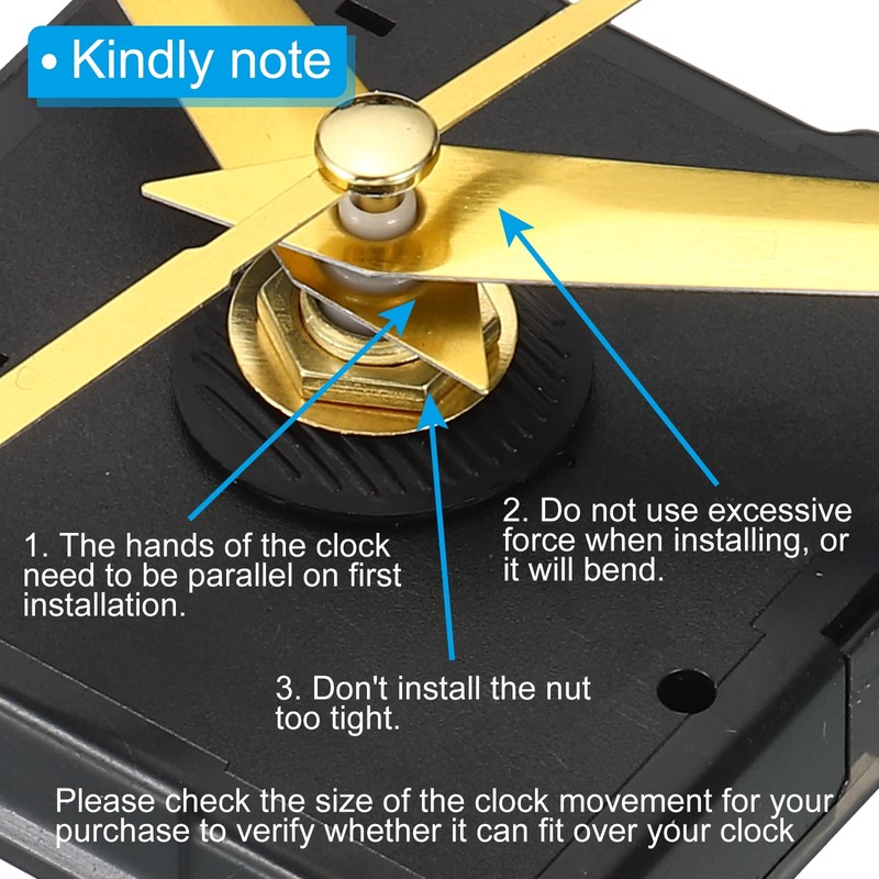 - Note: 1. Please check the size of the battery clock mechanism for your purchase to verify whether it can fit over your clock; 2. Do not use excessive force when installing, or it will bend.