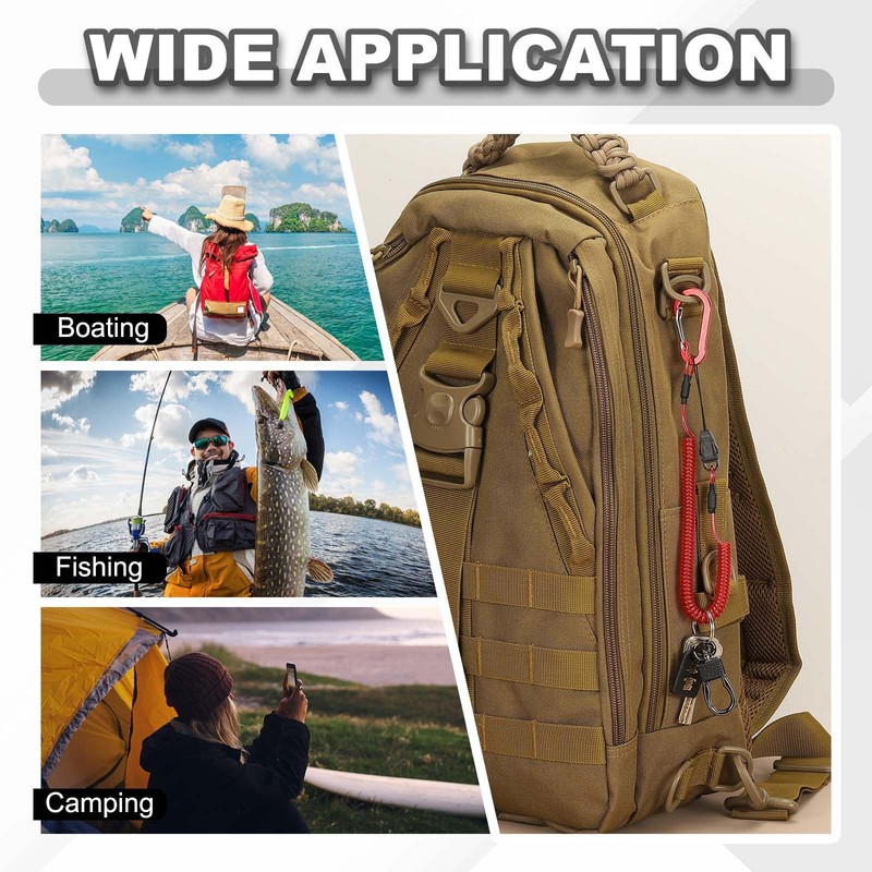 - Application: The quick-release coiled lanyard is widely used for outdoor activities, such as fishing, camping, hiking, and hunting. It can also be easily attached to belts, backpacks or kayaks to hold keys, whistles, pliers, and more.