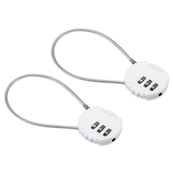 PATIKIL Combination Lock 8 Inch, 2 Pcs 3 Digit Outdoor Waterproof Code Padlock with Wire Rope for Luggage Gym Locker Fence Toolbox Backpack, White