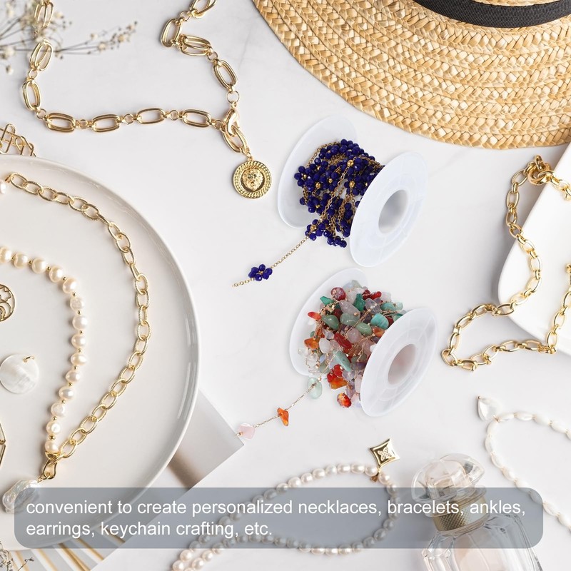- Instruction: The beaded chain for jewelry making supplies is rolling on a reel to avoid messing or tangling, it is easy for you to cut any length you desire with a jewelry plier. When not in use, wrap it back around the reel and store it easily and conveniently.