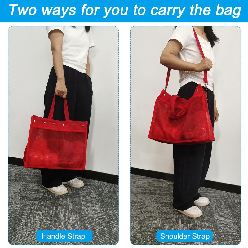 To use the crochet bag, simply open it up and place your knitting accessories and supplies inside. The handle strap and detachable shoulder strap allow you to easily carry the bag with you wherever you go, making it good for taking your knitting projects on the go.
