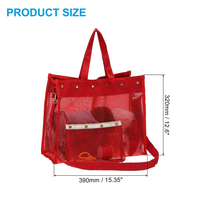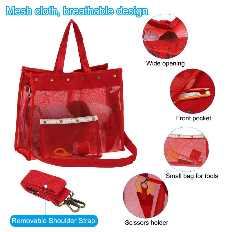 PATIKIL Crochet Bag for Yarn Storage, Large Size Knitting Organizer Detachable Mesh Yarn Case Holder with Strap for Crocheting Supplies Needles Hooks, Red