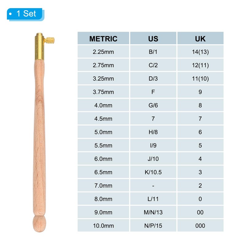 - Color: Wood; Material: Metal, wood; Size: 0.7mm / 0.03 inches; 0.9mm / 0.04 inches; 1mm / 0.04 inches; Packing List: 1 handle * 1 + needle * 3